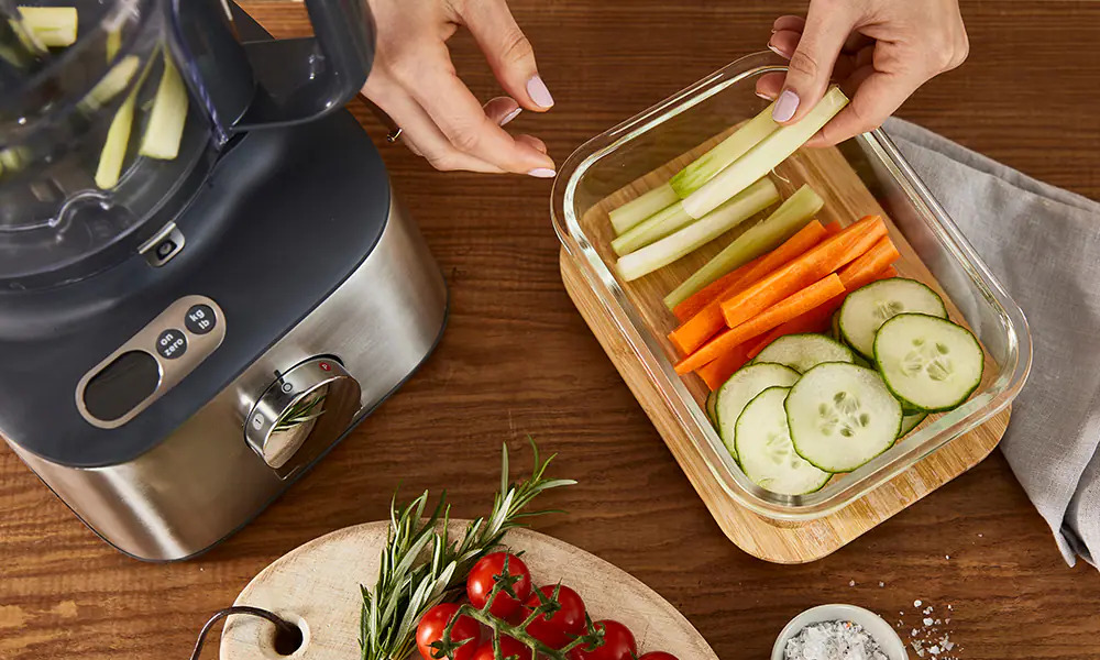 การออกแบบที่ใช้งานได้จริง ผ่อนคลายภายใต้การควบคุมใช้ประโยชน์จากแต่ละชิ้นอาหารอร่อย Multipro จะสับ หั่น และขูดอย่างแม่นยำและปลอดภัยเพื่อลดเศษอาหาร เคลื่อนย้ายไปทั่วห้องครัวได้ง่ายด้วยมือจับที่แข็งแรง และเมื่อคุณเตรียมเสร็จแล้ว ก็แค่ใส่ลงในเครื่องล้างจาน |